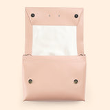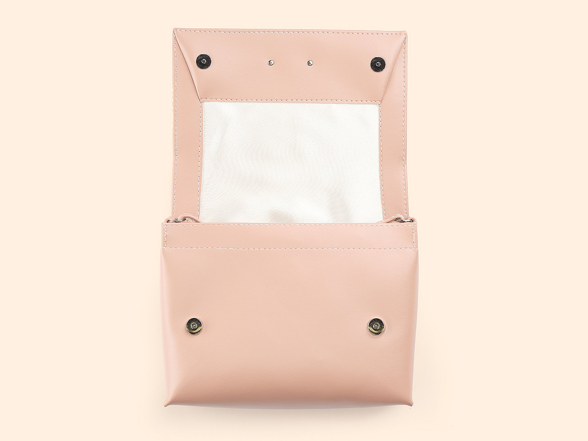 A pretty classic pink handbag, practical in size, color and inside pocket. The strap is adjustable to allow it to be worn at the desired height. Its white lining adds a nice touch of elegance. This little bag will amaze you! It pairs beautifully with the collection's card holders.